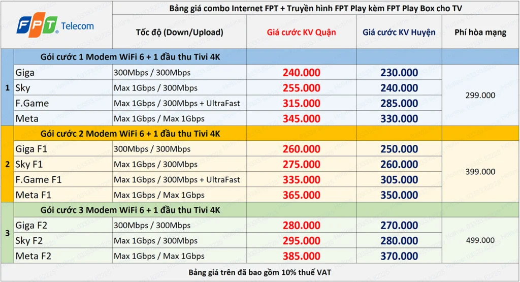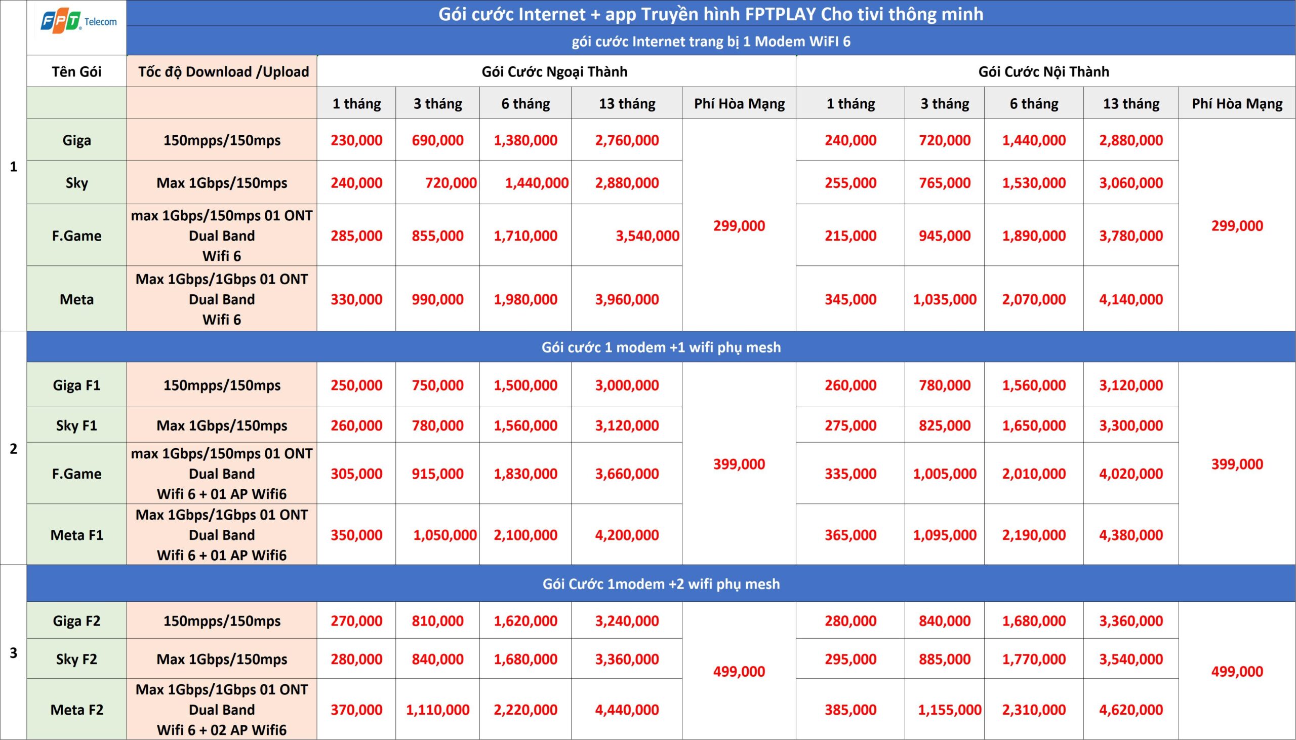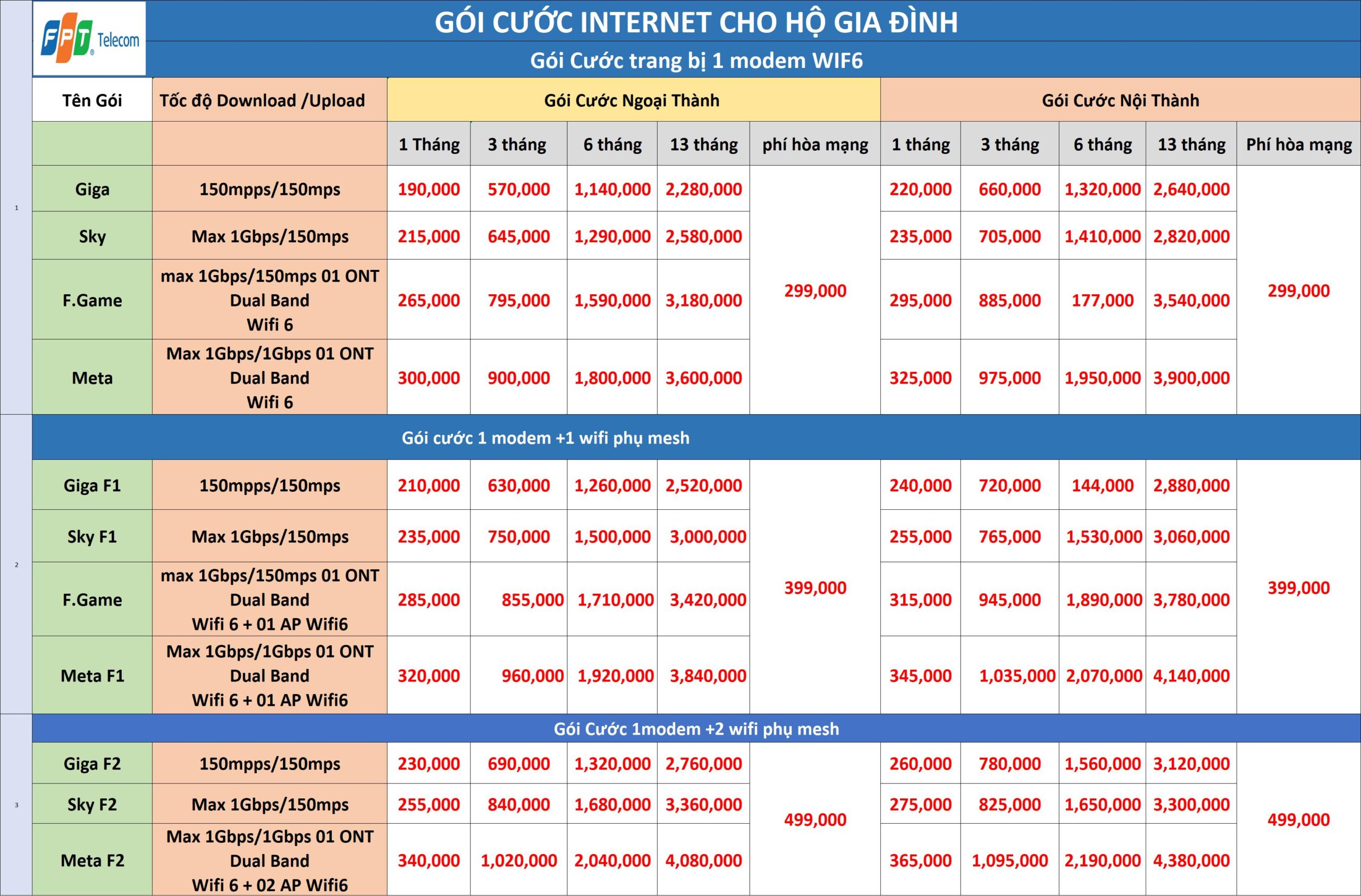 I. BẢNG GIÁ LẮP MẠNG FPT HUYỆN PHÚ XUYÊN